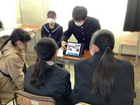 交流会では、本校1年生が、タブレットを使って学校生活について紹介したり、6年生からの質問に答えたりしました。