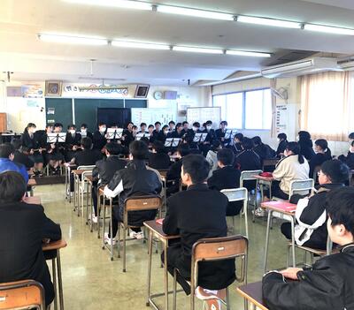 啓新高校アスリートコース3年生の皆さんが1年生の音楽の授業に参加してくれました。