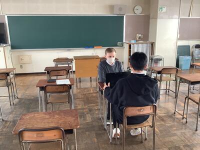 2年生の英語では、2人のALTのもと、パフォーマンステストが行われていました。生徒それぞれが興味もったことを調べ、プレゼンにまとめ、ALTに発表していました。写真の女子生徒は、人気の給食について調べ発表していました。少し緊張していましたが、上手に発表できたようです。