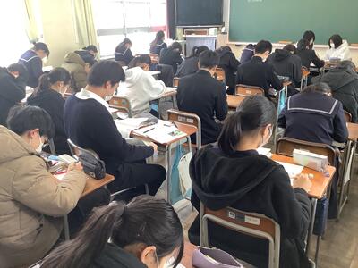 3年生の教室では、数学の問題にそれぞれが取り組み、受験に向けてのラストスパートに勤しんでします。