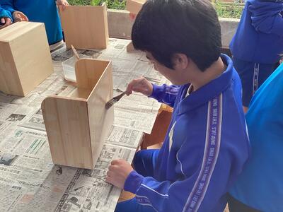 今日は、ニス塗り、釘打ちや、素地磨きをしていました。