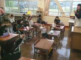 先日の技術の授業で製作した「マイ楽器」(篳篥と竜笛)を使って音を出しながら、3時間かけて『越天楽』の演奏を目指します。まずは、雅楽の楽器のことを教えていたただき、笙の演奏にチャレンジしました。