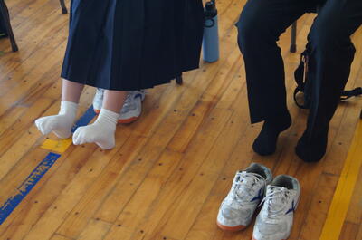 藤井先生は、身長の伸び方と怪我への影響についてクイズやケガのランキングを交えて楽しく解説してくださいました。講演の後半では椅子に座ったままでもできる柔軟運動を教えていただきました。参加者全員で実際に柔軟運動を試し、毎日の継続が健康で怪我のない体作りにつながることを学びました。🤸♀️