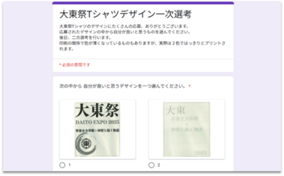 決定したデザインです。このTシャツをきて、生徒のみなさんがいきいきと活躍する大東祭が楽しみになってきました。