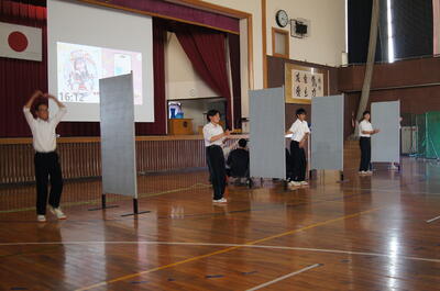また、学校祭に向けたオリジナルTシャツのデザイン発表も行われました。この企画は昨年から始まり、生徒全員が着用して、祭りを盛り上げることを目指しています。今年のデザインは全校生徒から募集した27作品の中から選ばれ、グーグルフォームを用いた一次・二次投票を経て決定しました。